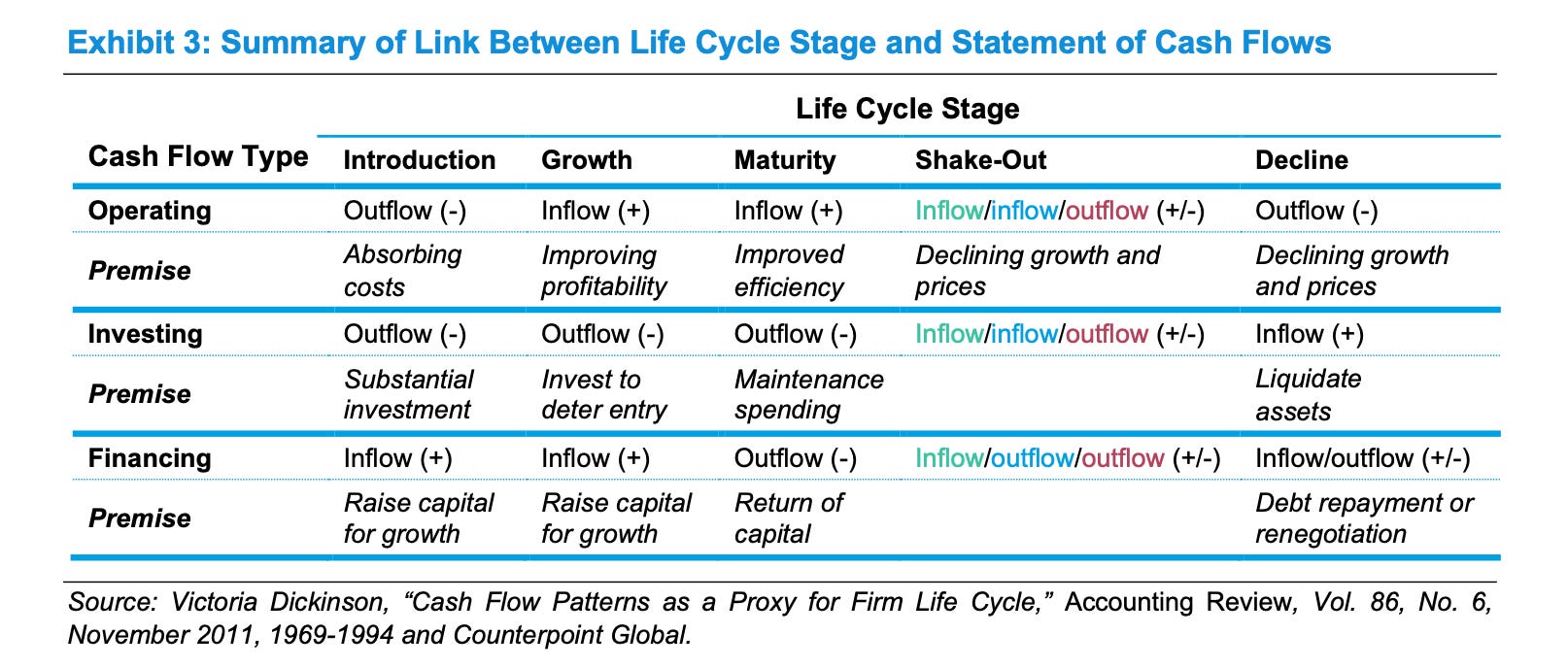 The below exhibit from Michael Maubussin`s paper does a fantastic job of giving an easy route for identifying the stages, for me to build expectations.