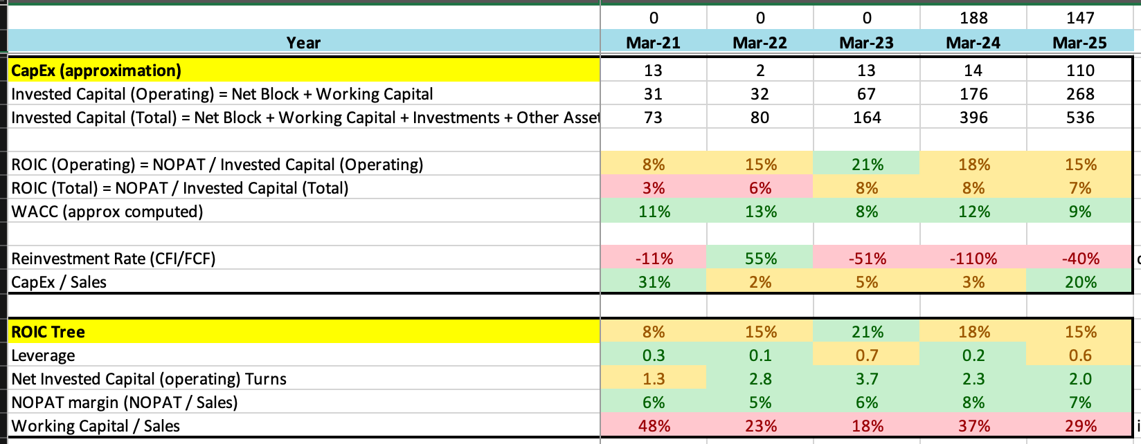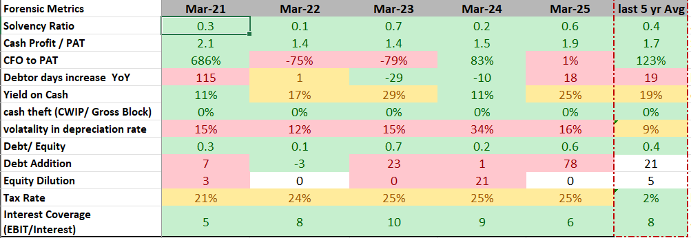 I've reordered my Excel sheets and put Forensic Accounting first. Cheap valuations have often distracted me from overleveraged balance sheets and promoters siphoning off cash in Capex. What's the point of finding something cheap if the company is fraudulent or not shareholder-friendly?