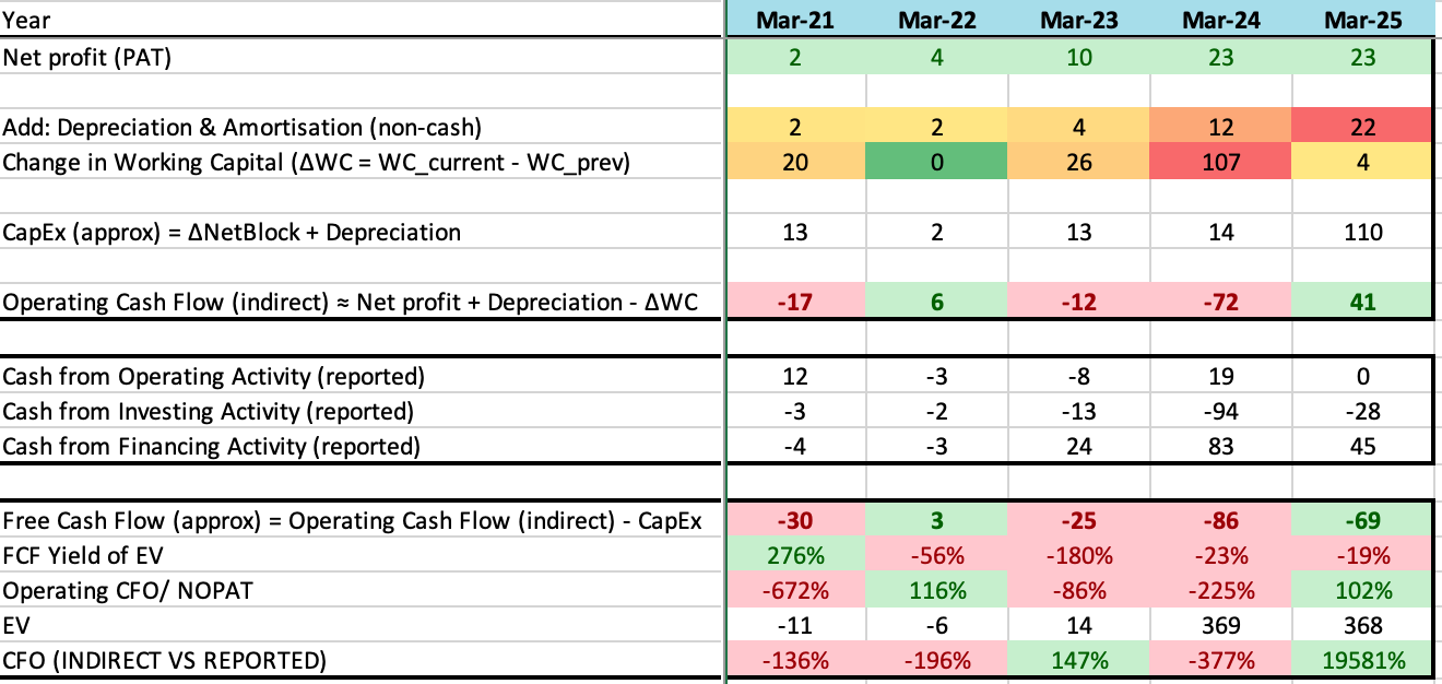 I don't trust only the P&L; nobody should. Cash is the ultimate reality. Promoters have learned new ways to manipulate cash flows, so I create cash flow statements using the indirect method, avoiding one-offs, creative entries, and other non-cash adjustments.