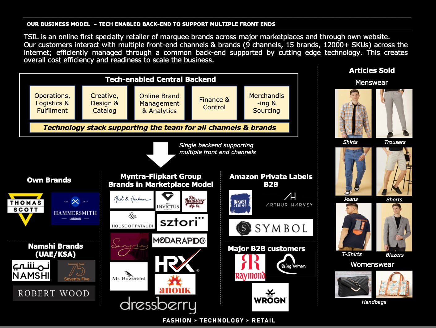 V2 of Thomas Scott - Vedant added the Tech Platform flavour, and expanded into Licensing (on Flipkart and Myntra) and Private Labelling (on Amazon) while keeping the traditional B2B vertical intact with more clients. He then started selling in UAE (through NAMSHI stores). The tech that he deploys helps him to launch new SKUs very fast by identifying Product Offering gaps by looking at the E-commerce platform data, which now enables Thomas Scott to fulfil 9000+ orders through warehouses set up across major cities. They now also sell Jeans, Blazers, Trousers, Bags and T-shirts. In summary - expansion through Product Categories and # of SKUs plus geographical expansion. Needless to say, Vedant has used his academic ( CA + CFA+ Actuary) and professional (Investment Banking in Deloitte) background to crack the Fashion Code, albeit through Data Science!